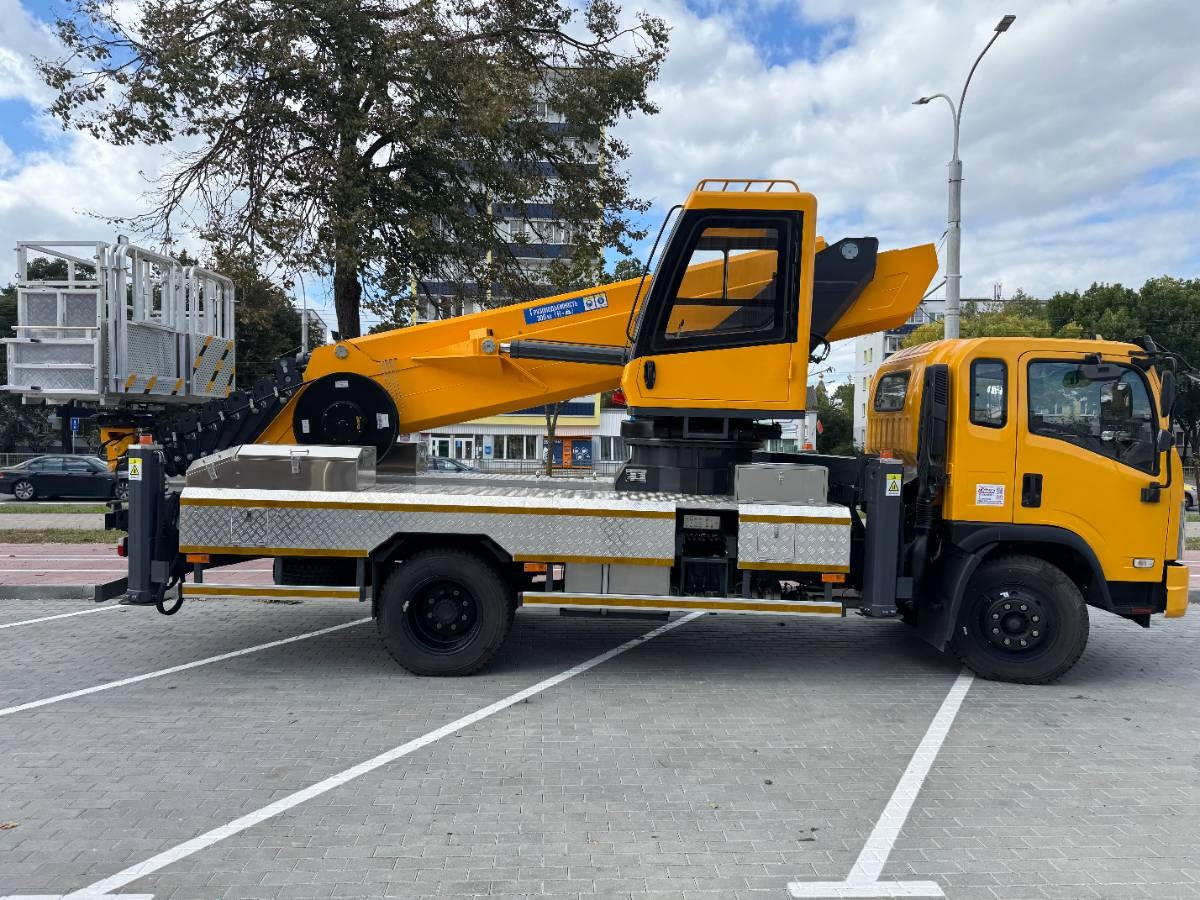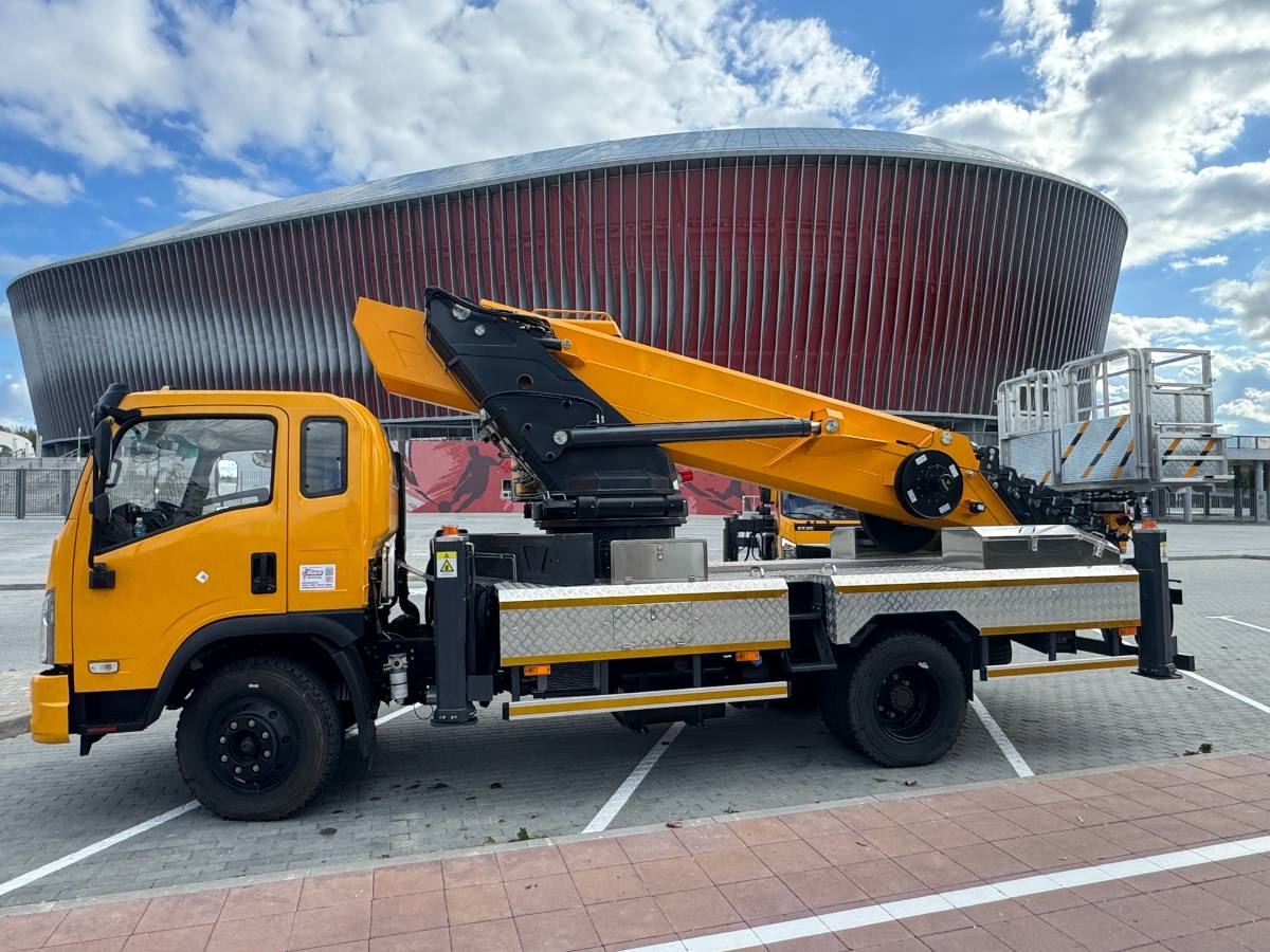 Телескопическая автовышка с высотой подъема 45м. В наличии в Минске!!! Хорошее качество, установка и шасси с адаптацией под суровые условия. Гарантия. - Страна произодства - КНР; - Шасси DONGFENG; - Двигатель 4.0, 135 кВт; - 8 МКПП; - Полноповоротная рабочая платформа (360+90°) шириной до 3500 мм; - Пульт дистанционного управления с продвинутой системой безопасности (анемометр, креномер, датчик нагрузки, указатель угла наклона стрелы, датчики длины выдвижения опор); - Горизонтальный вылет до 25 м!!; - Кабина оператора; - Кондиционер, электропакет, круиз, центральный замок с ДУ; - Дата производства - август 2025; - Параметры шасси - 8560*2470*3580 мм; - масса 14000 кг; - Колесная база - 4200 мм; - 2 пассажирских места, спальник.