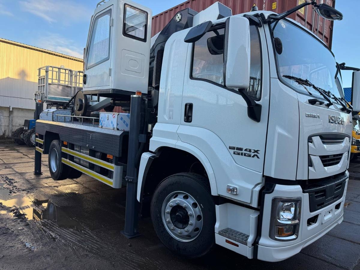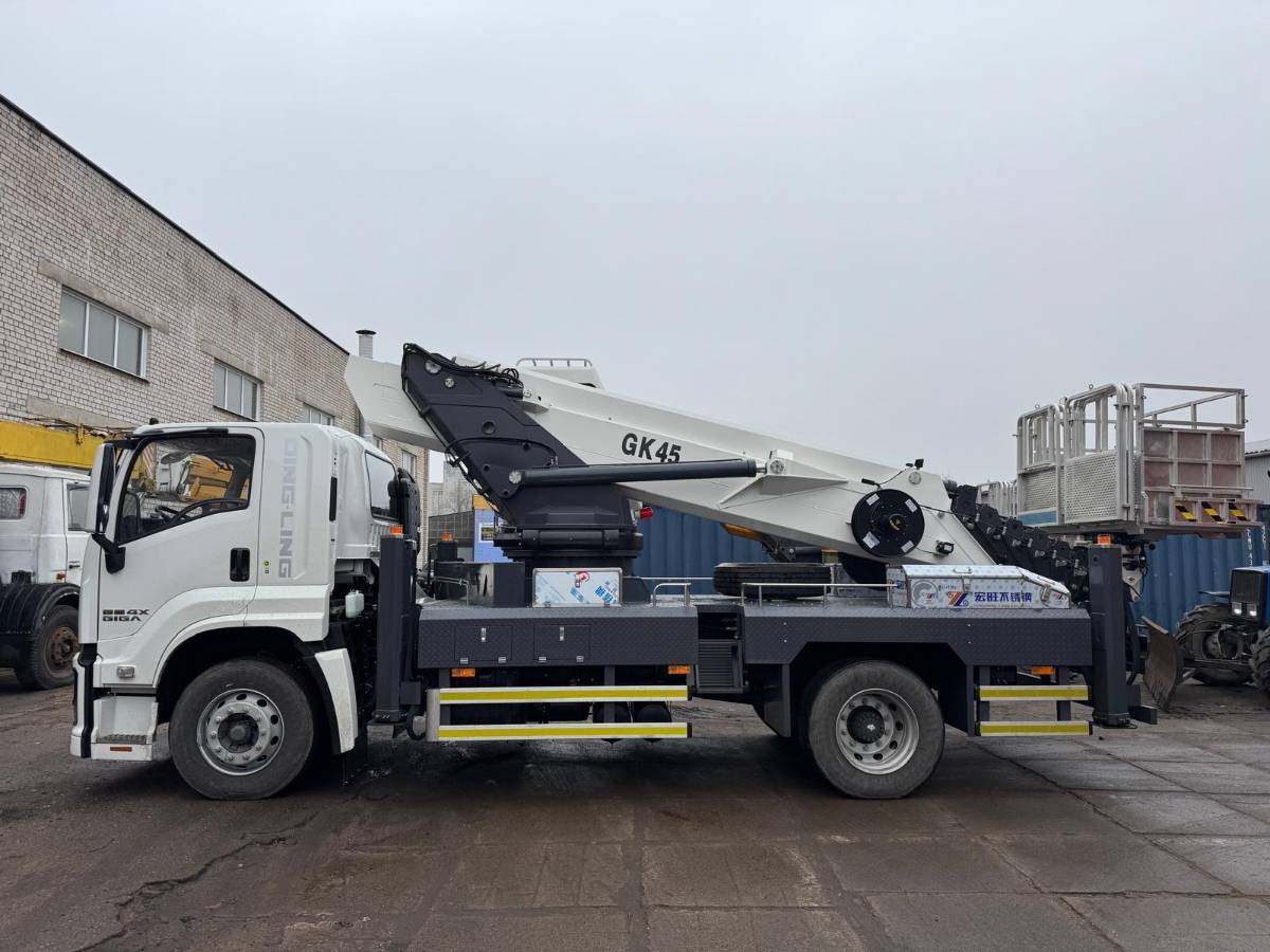 Телескопическая автовышка с высотой подъема 45м. В наличии в Минске!!! Хорошее качество, установка и шасси с адаптацией под суровые условия. Гарантия. - Страна произодства - КНР; - Шасси ISUZU; - Двигатель 5.2, 165 кВт; - 8 МКПП; - Полноповоротная рабочая платформа (360+90°) шириной до 3500 мм; - Пульт дистанционного управления с продвинутой системой безопасности (анемометр, креномер, датчик нагрузки, указатель угла наклона стрелы, датчики длины выдвижения опор); - Горизонтальный вылет до 25 м!!; - корзина-трансформер до 3.200 мм шириной; - Кабина оператора; - Кондиционер, электропакет, круиз, центральный замок с ДУ, заводской видеорегистратор; - Дата производства - ноябрь 2025; - Параметры шасси - 9060*2500*3660 мм; - масса 15700 кг; - Колесная база - 4500 мм; - 2 пассажирских места, спальник.